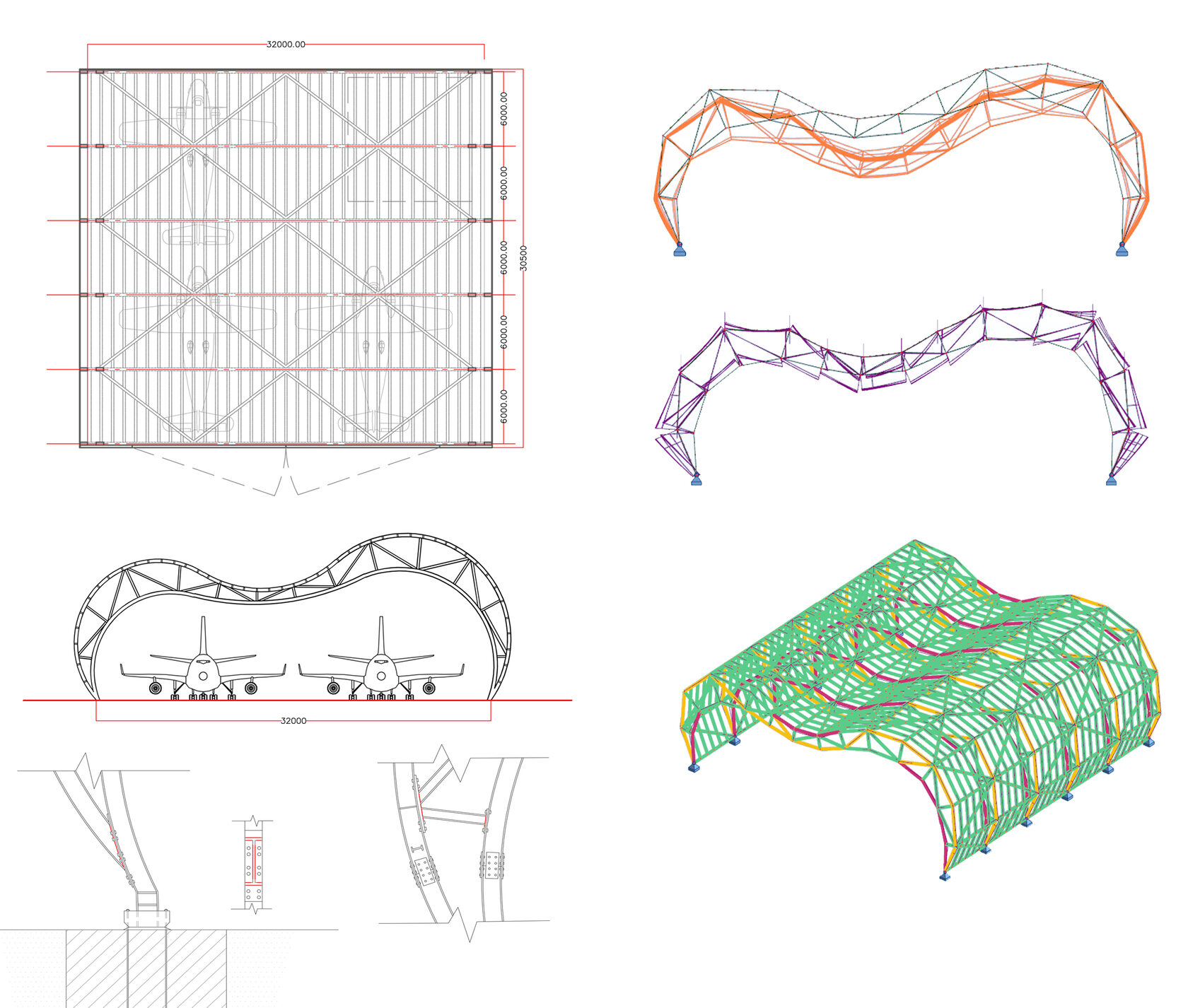 Proyecto de boceto del hangar con el cálculo de las estructuras